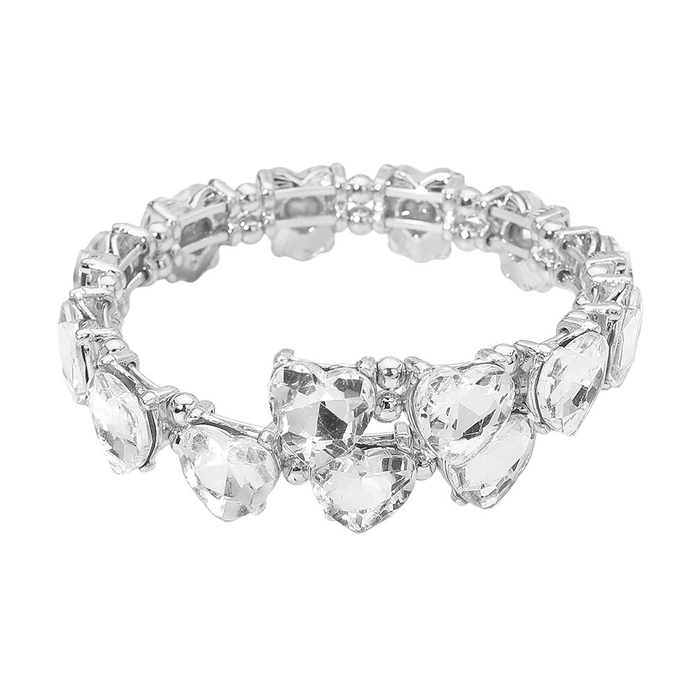 Details • Size : 1" H • Adjustable • Add radiant charm to your look with this adjustable bracelet featuring sparkling heart-shaped stones arranged for eye-catching shine. Perfect for parties, special occasions, or everyday glam, it offers a comfortable fit and a romantic, elegant touch that enhances any outfit with dazzling appeal. • Lead and Nickel Compliant