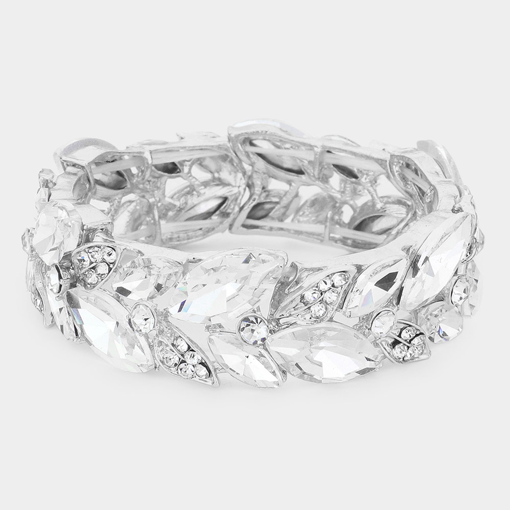 Marquise Stone Accented Leaf Cluster Stretch Evening Bracelet