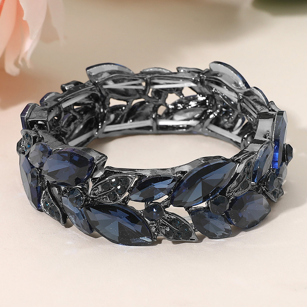 Marquise Stone Accented Leaf Cluster Stretch Evening Bracelet Marquise Stone Accented Leaf Cluster Stretch Evening Bracelet