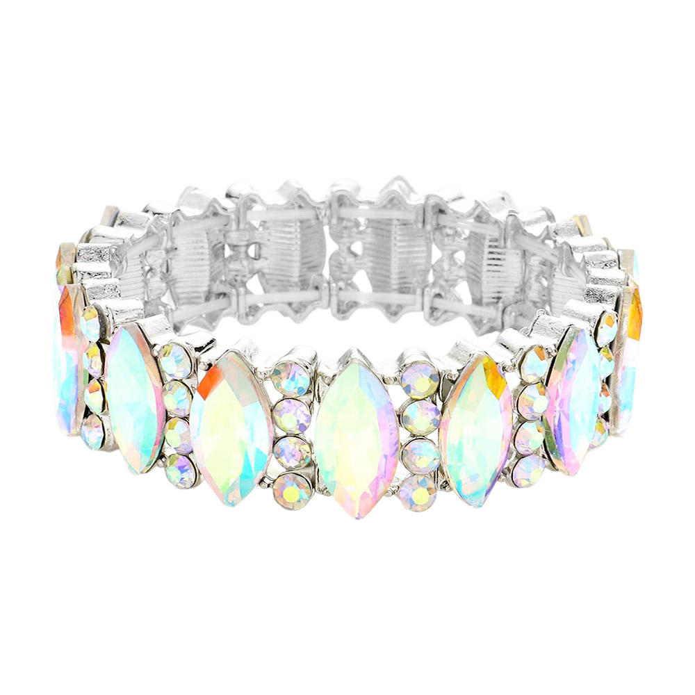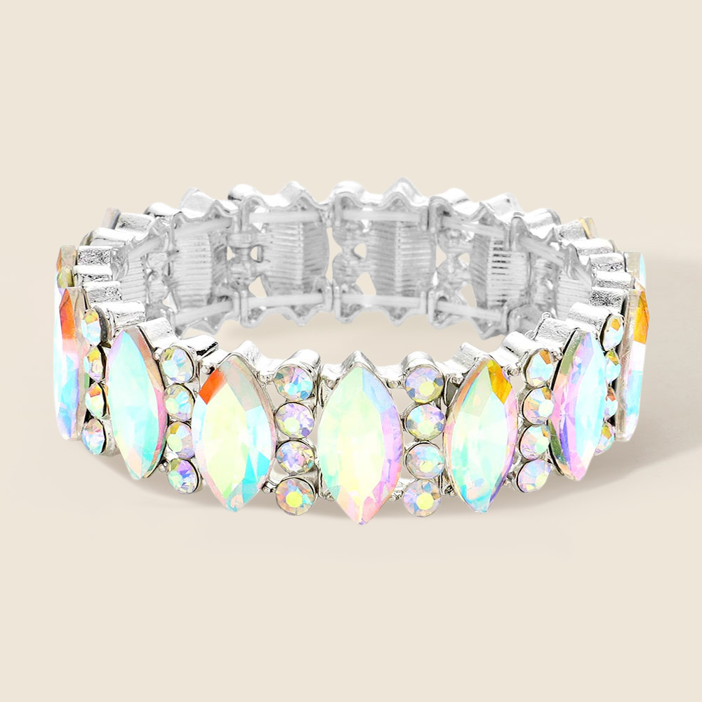 • Elevate your look with this rhinestone stretch bracelet featuring dazzling marquise and round cut stones. Designed for comfort and shine, it offers a glamorous touch to any outfit. Perfect for weddings, parties, or evening wear, this sparkling bracelet adds timeless elegance to your jewelry collection.