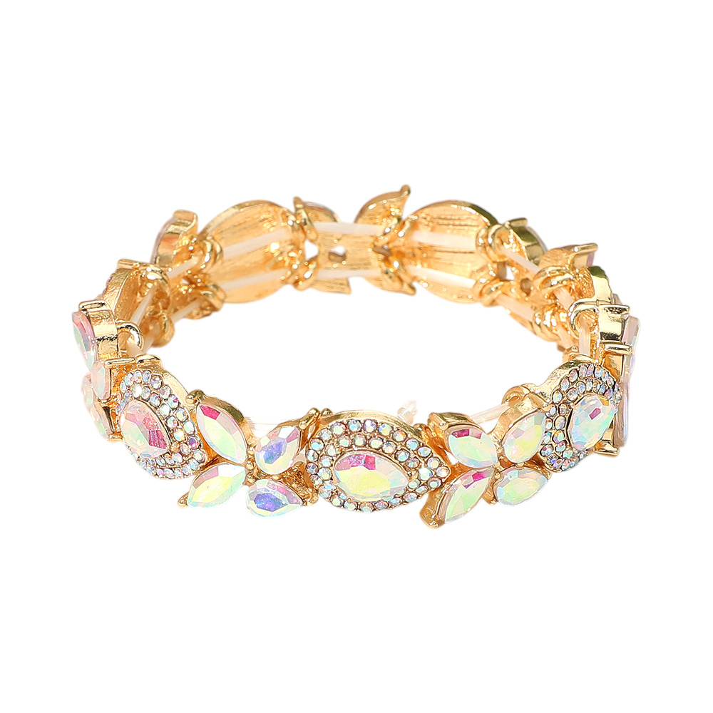 Marquise Teardrop Stone Cluster Beaded Stretch Bracelet