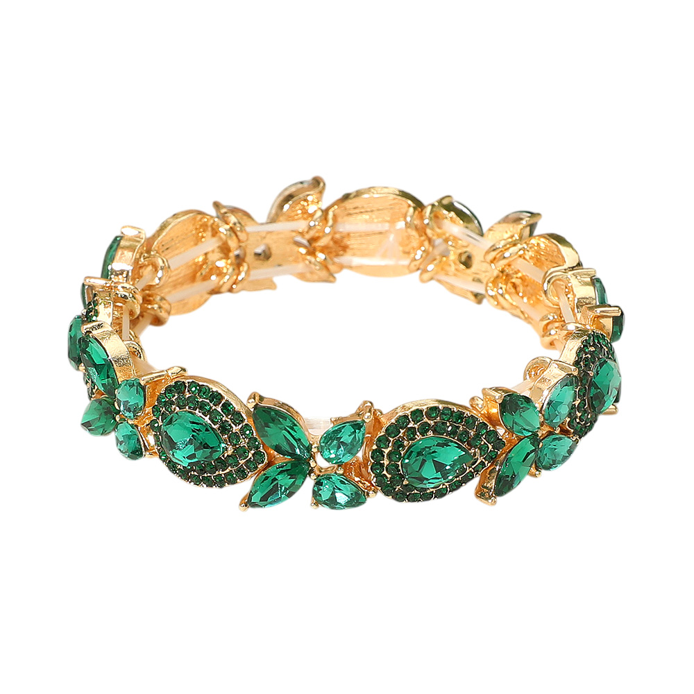 Details • Size : 0.5" H • Stretchable • Elevate your style with this rhinestone teardrop bracelet, featuring dazzling stones arranged in a detailed floral and teardrop design. Perfect for weddings, parties, or formal occasions, this sparkling bracelet adds glamour and sophistication, making it a must-have accessory for any jewelry lover. • Lead and Nickel Compliant