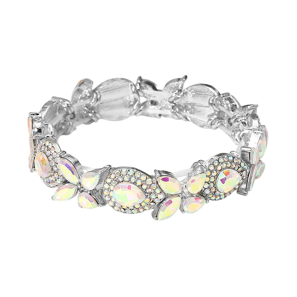 Marquise Teardrop Stone Cluster Beaded Stretch Bracelet