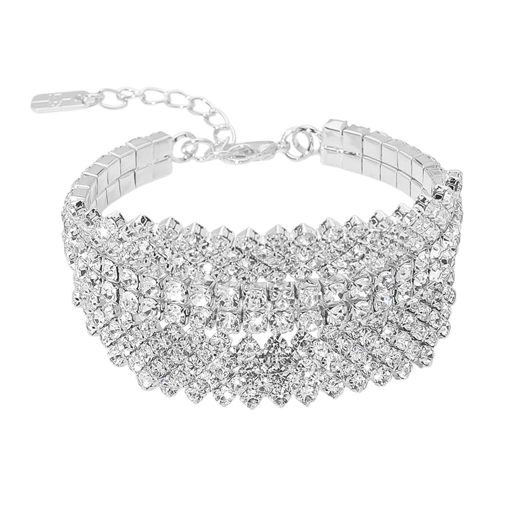 Multi-Row Rhinestone Embellished Evening Bracelet
