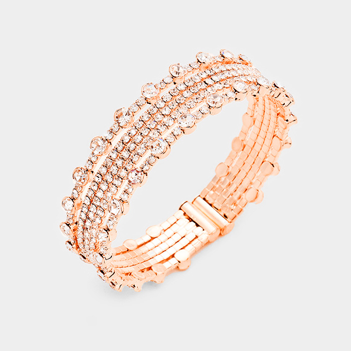 Multi Strand Pave Crystal Rhinestone Cuff Evening Bracelet