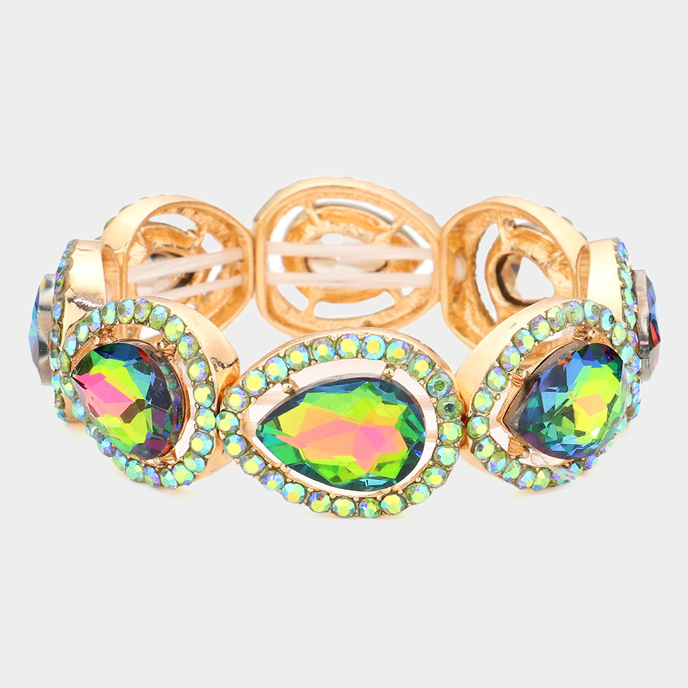Pave Teardrop Trim Glass Crystal Stretch Evening Bracelet