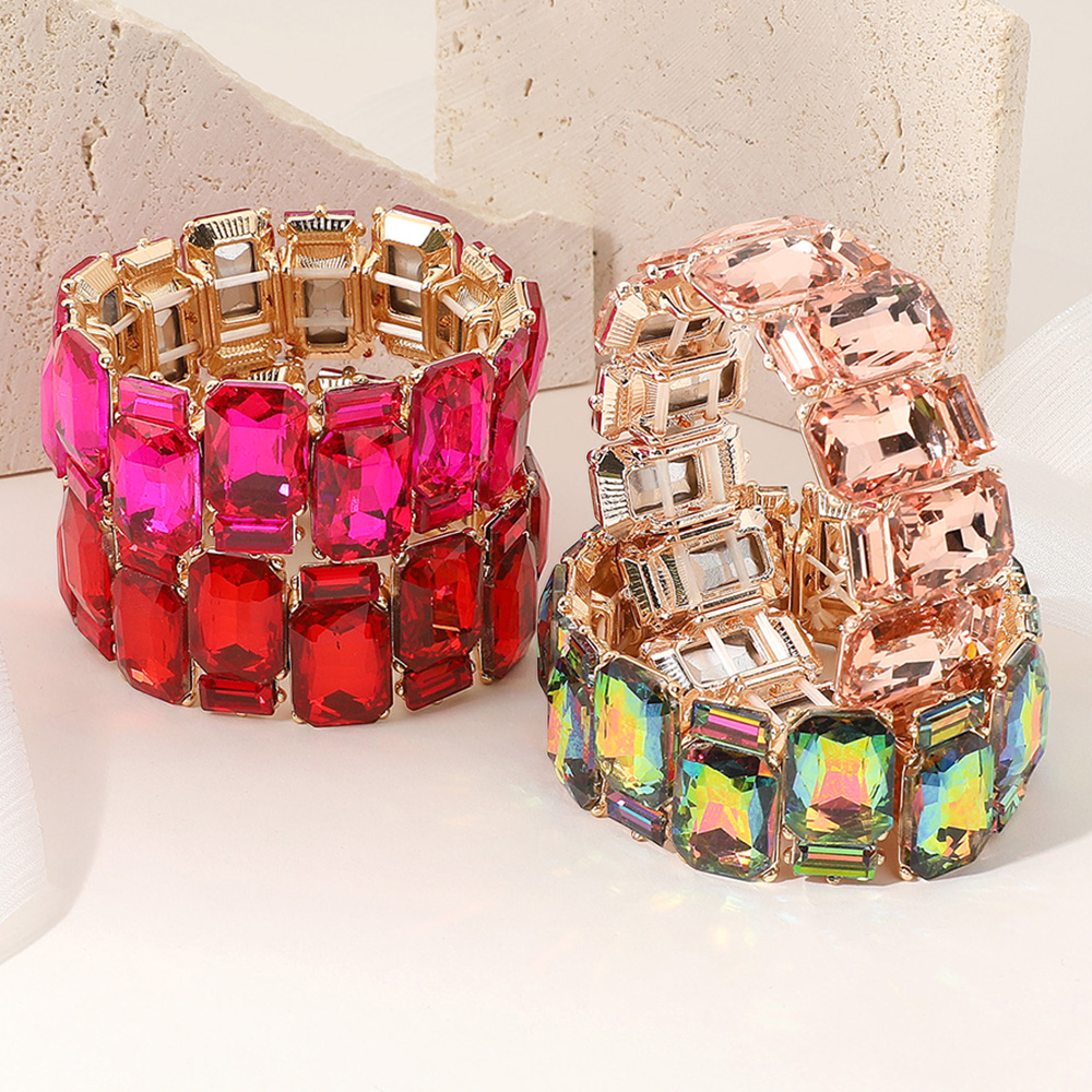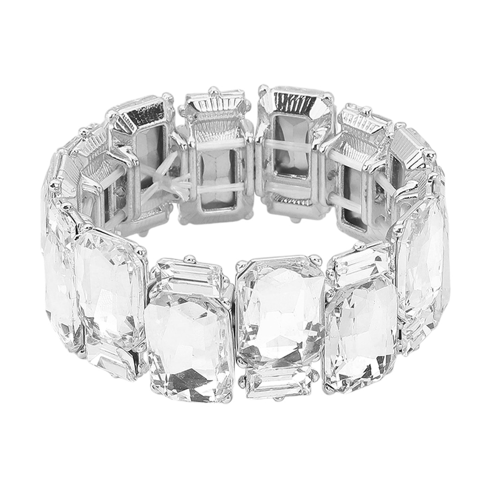 Rectangle Glass Stone Cluster Stretch Evening Bracelet