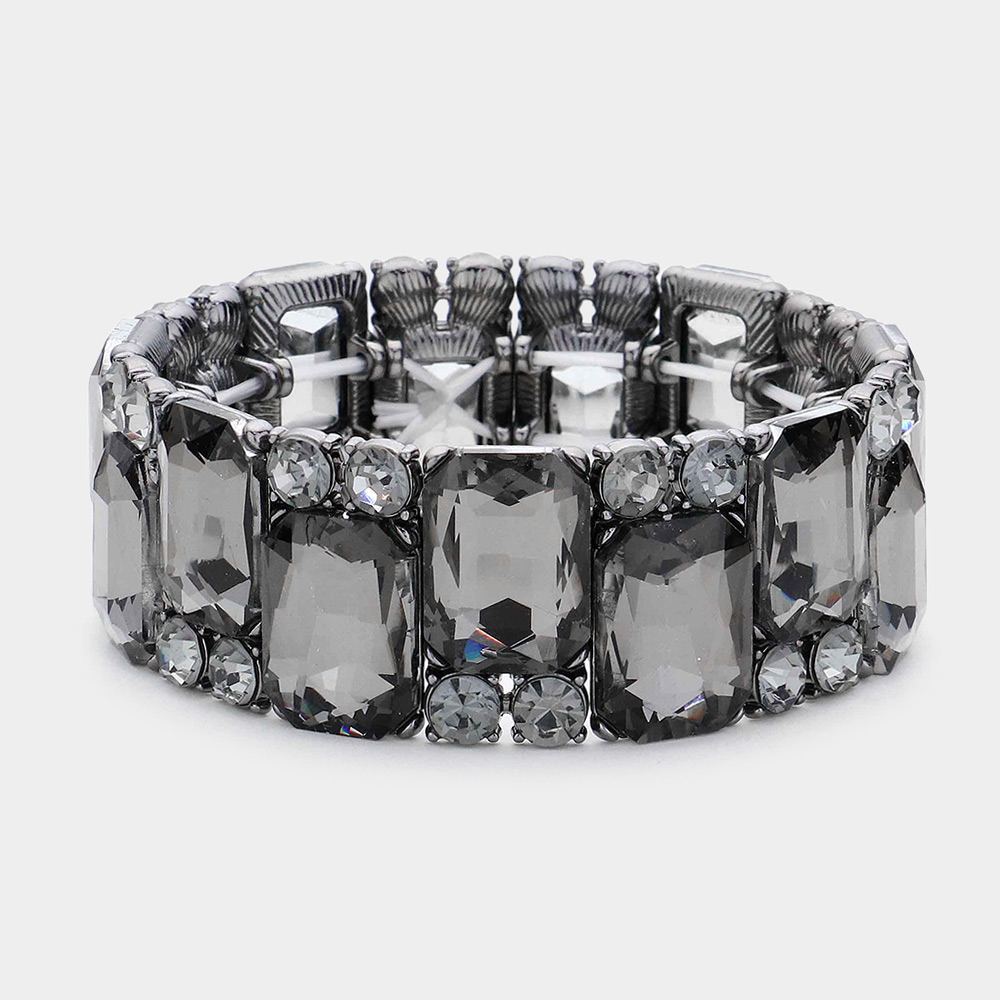 Rectangle Round Glass Stone Cluster Stretch Evening Bracelet