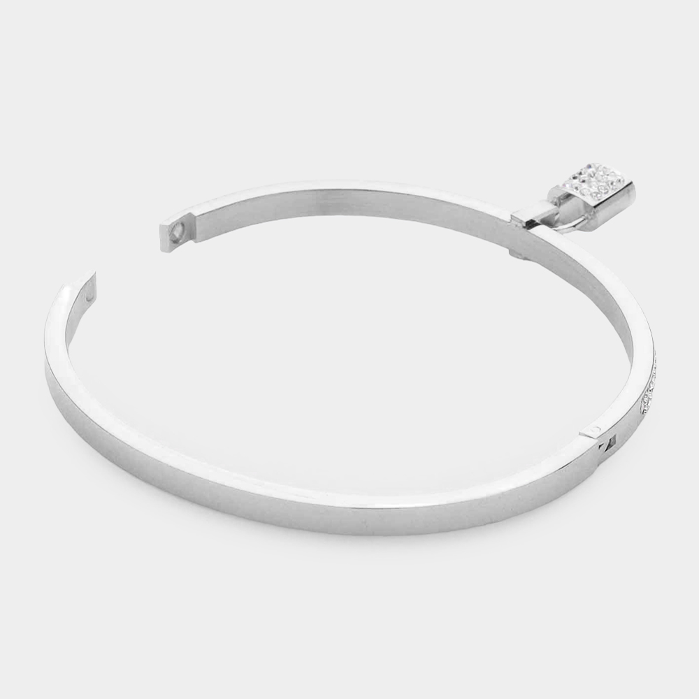Rhinestone Embellished Lock Charm Stainless Steel Bangle Evening Bracelet