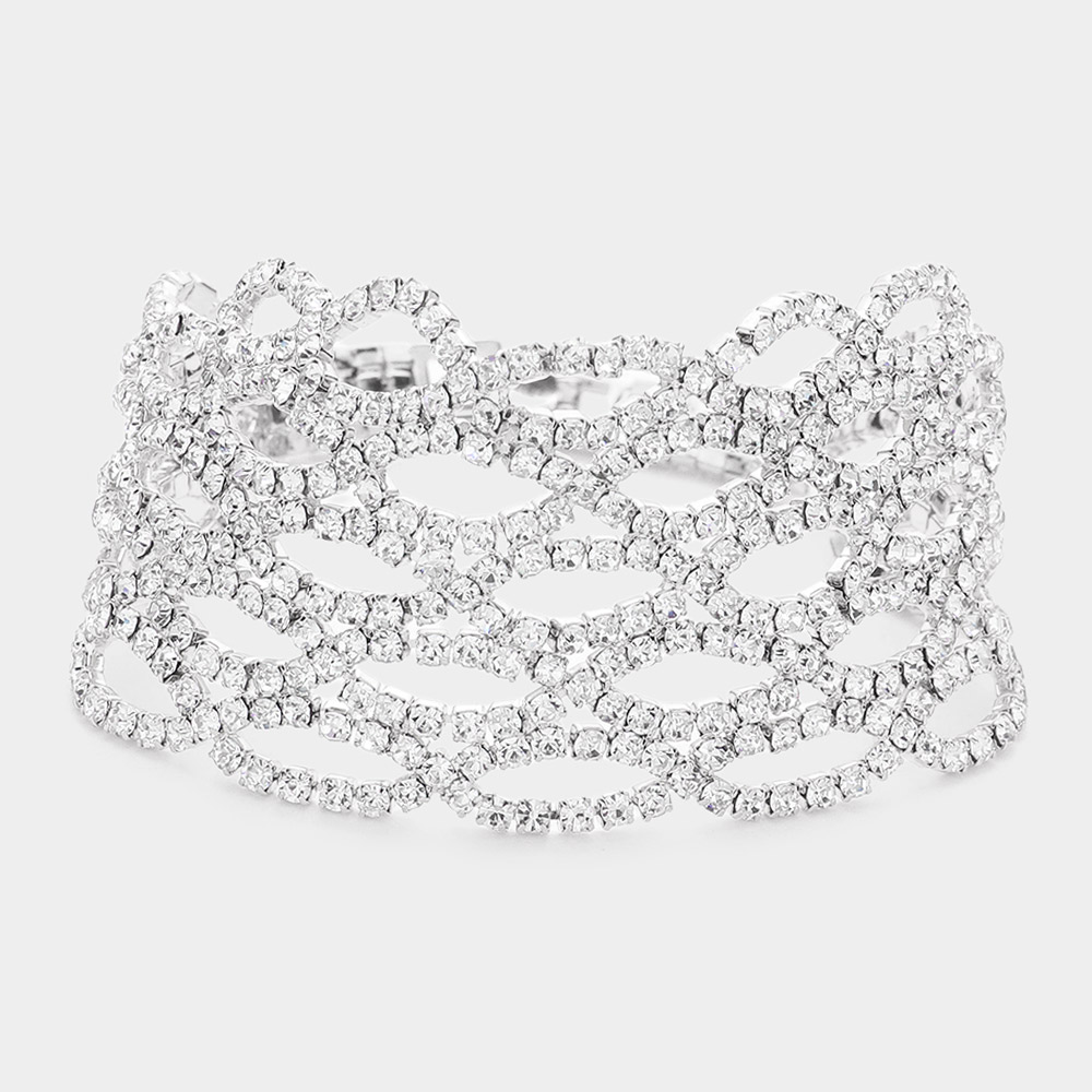 Marquise Stone Cluster Embellished Rhinestone Paved Necklace