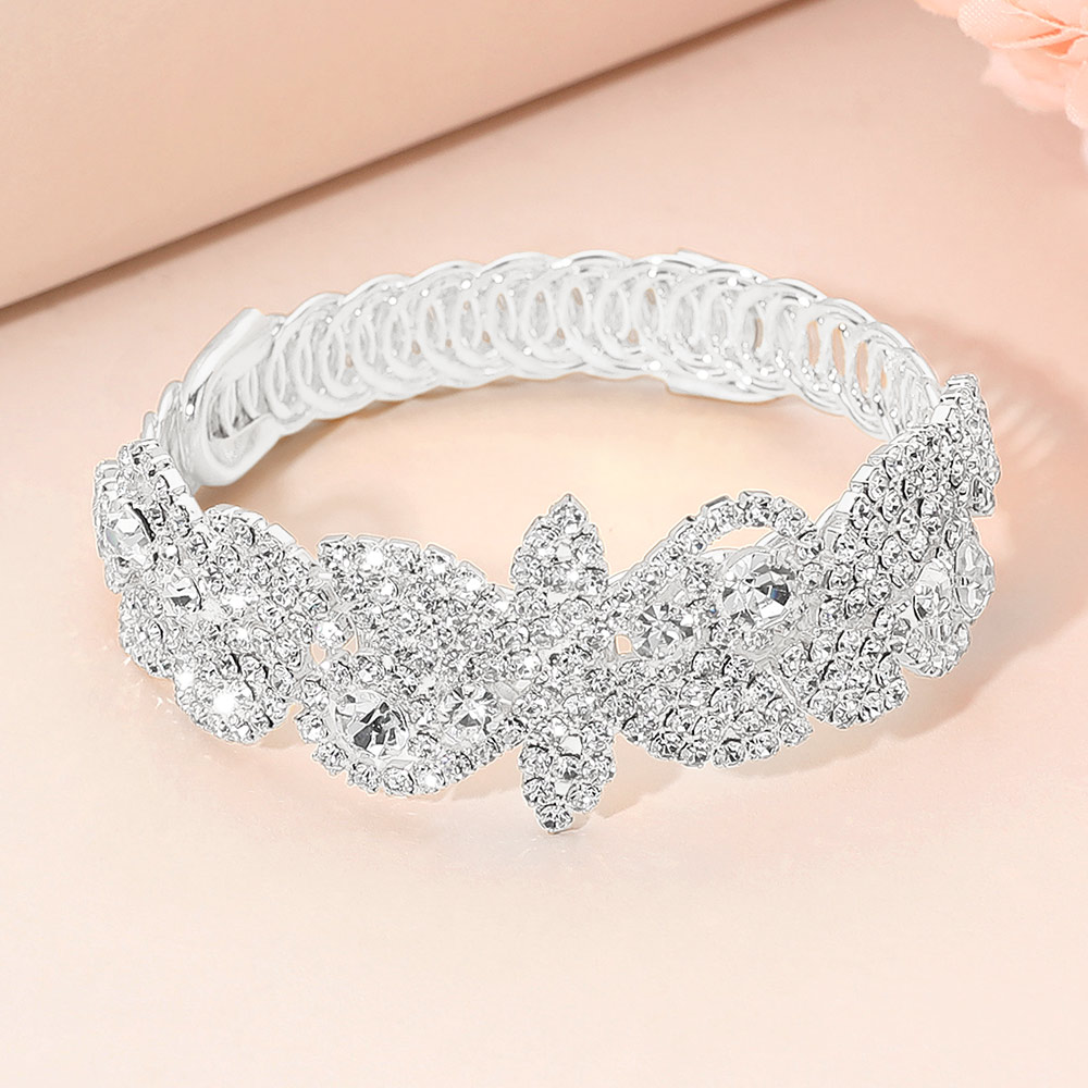 Rhinestone Paved Floral Leaf Adjustable Evening Bracelet Rhinestone Paved Floral Leaf Adjustable Evening Bracelet