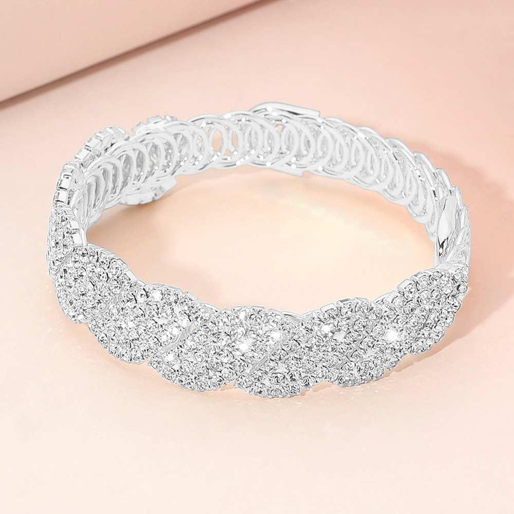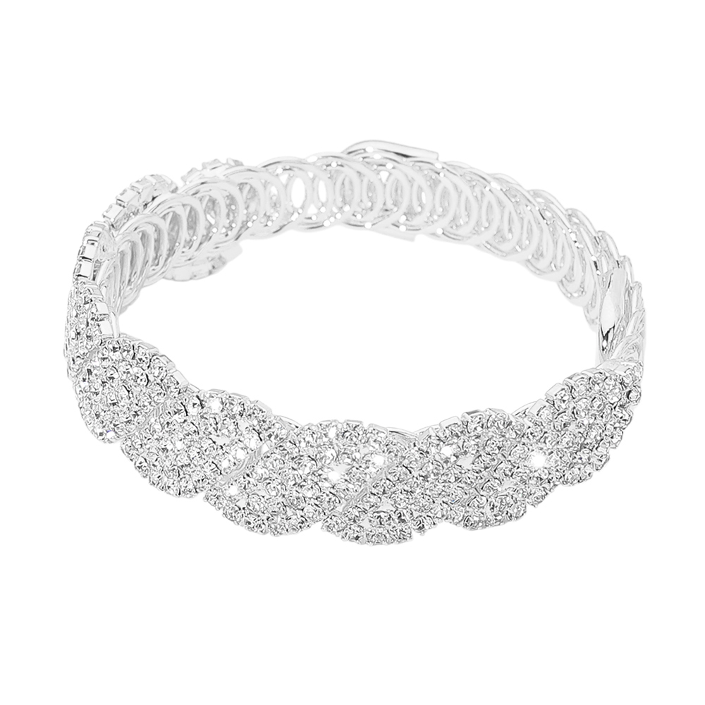Details • Size : 0.5" H • Adjustable • Add timeless sparkle to your look with this elegant twisted crystal adjustable bracelet. Its intricate spiral design is adorned with shimmering stones that catch the light beautifully, while the flexible band ensures a perfect, comfortable fit for both special events and daily wear. • Lead and Nickel Compliant