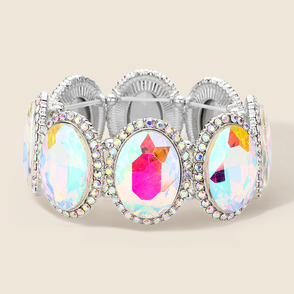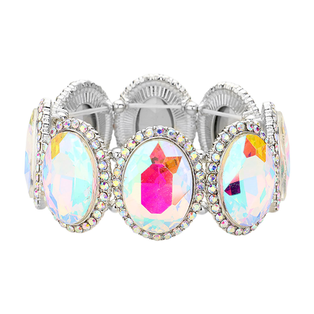 • Add glamour to your look with this oval crystal stretch bracelet featuring sparkling stones framed in dazzling accents. The flexible fit ensures comfort while delivering bold elegance. Ideal for weddings, parties, and special occasions where standout style matters.