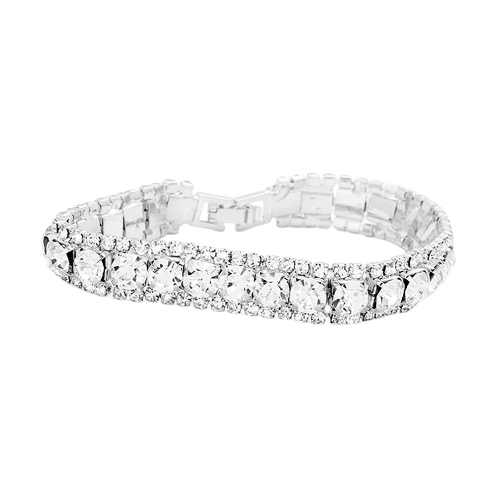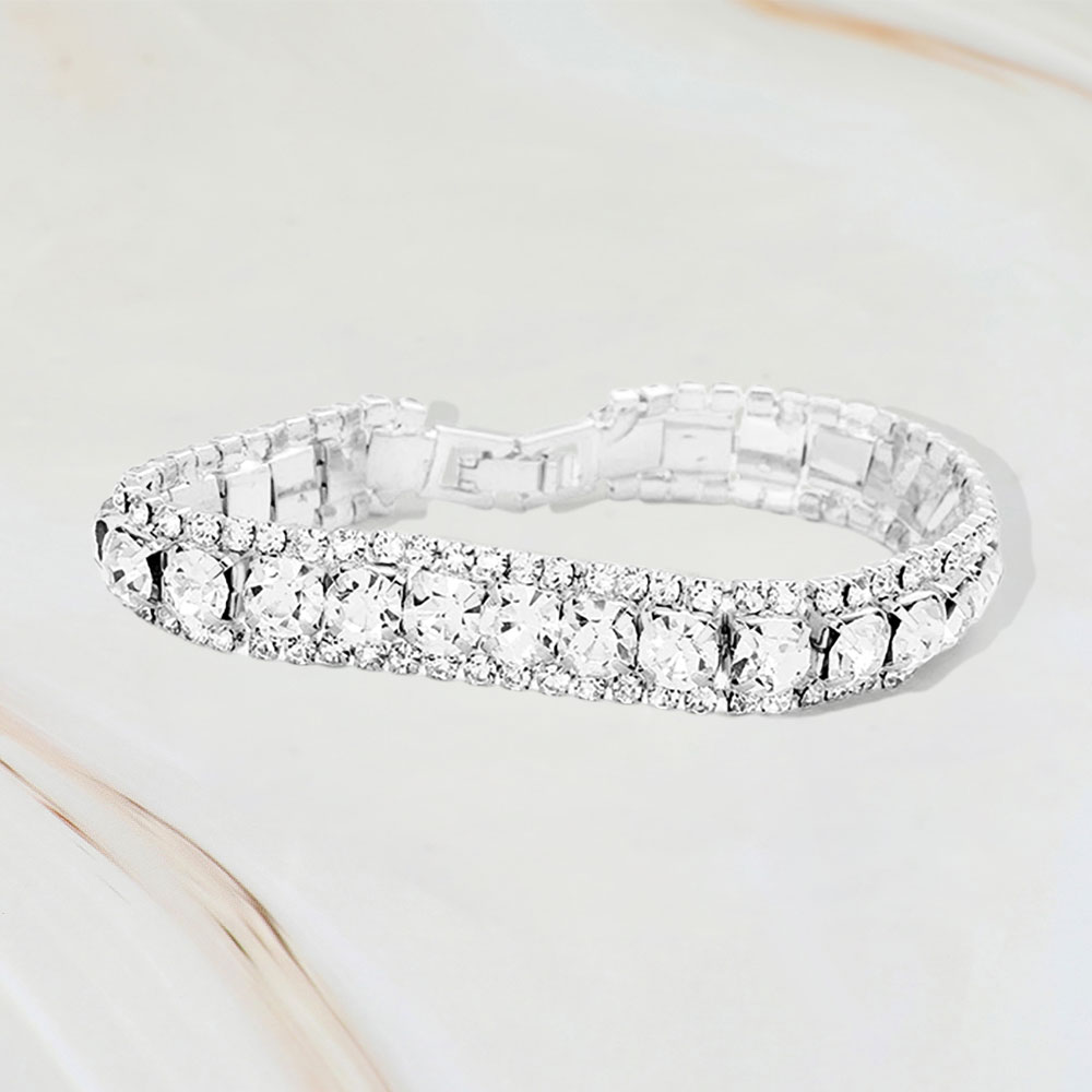 • This elegant double row bracelet features iridescent stones framed by shimmering accents for a radiant, eye-catching look. With a secure clasp and refined design, it’s perfect for adding a touch of glamour to evening wear or elevating everyday outfits.