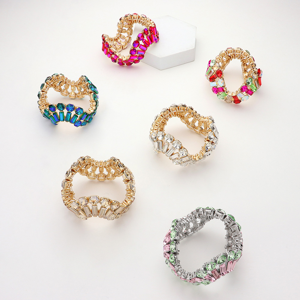 Round Emerald Cut Stone Cluster Wavy Stretch Evening Bracelet