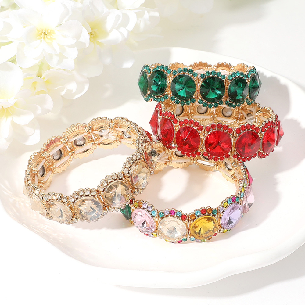 Round Glass Stone Cluster Stretch Evening Bracelet