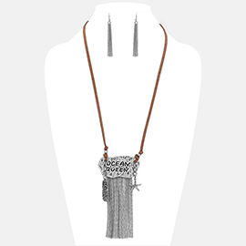 Teardrop Stone Accented Rhinestone Necklace Clip on Earring Set