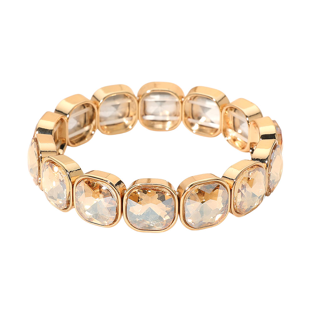 Square Cut Gem Beaded Stretch Evening Bracelet
