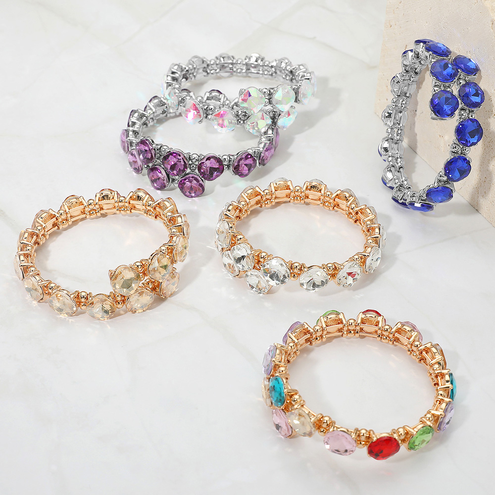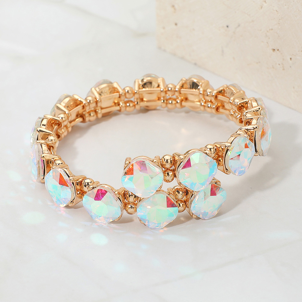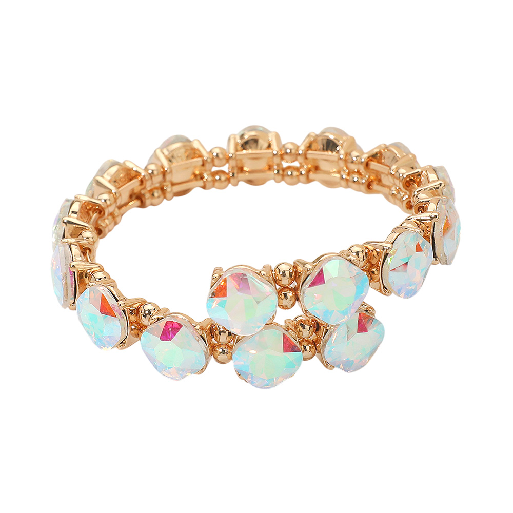 Rectangle Round Glass Stone Cluster Stretch Evening Bracelet