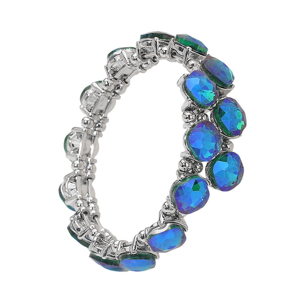 Pave Trim Crystal Oval Stone Stretch Evening Bracelet