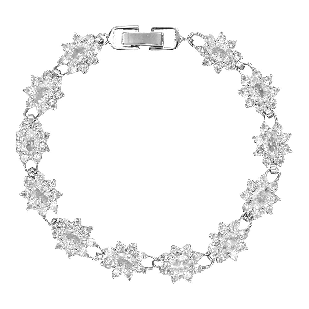 • Discover the beauty of this starburst design tennis bracelet featuring dazzling round-cut stones arranged in a radiant floral-inspired pattern. Perfect for special occasions or as a timeless gift, this bracelet adds brilliance and sophistication to any jewelry collection.