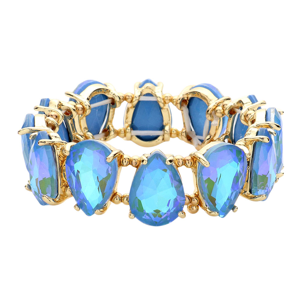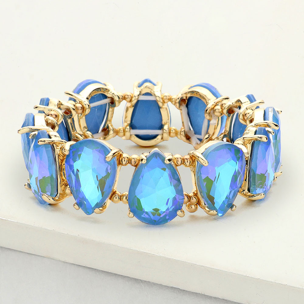 Teardrop Glass Stone Cluster Stretch Evening Bracelet