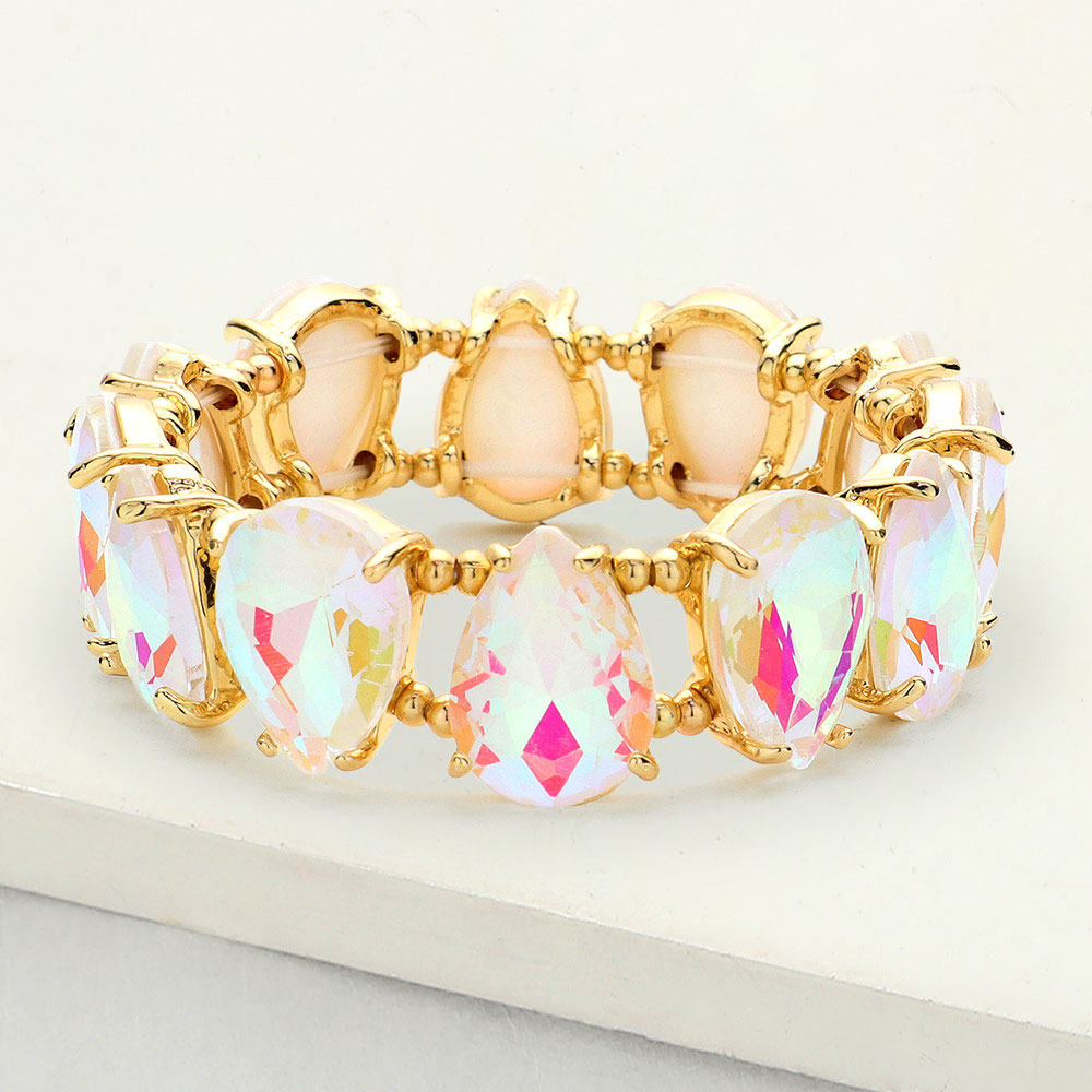 Teardrop Glass Stone Cluster Stretch Evening Bracelet
