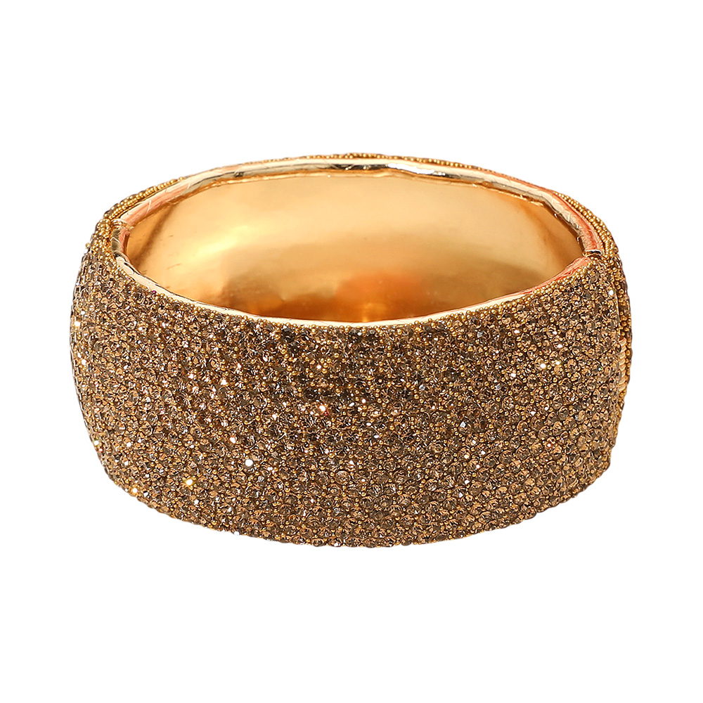 Wide Rhinestone Paved Hinged Evening Bangle Bracelet