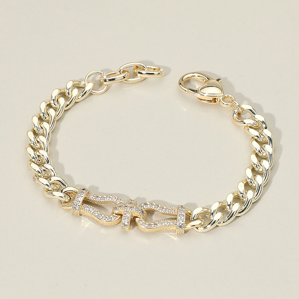 Details • Size : 0.5" H, 7" + 1" L • Lobster Clasp Closure • Add a sophisticated edge to your style with this elegant chain link bracelet featuring a sparkling crystal-accented centerpiece. Its timeless design blends classic charm with modern allure, making it a perfect accessory for elevating everyday or evening looks. • Gold Dipped • CZ Cubic Zirconia