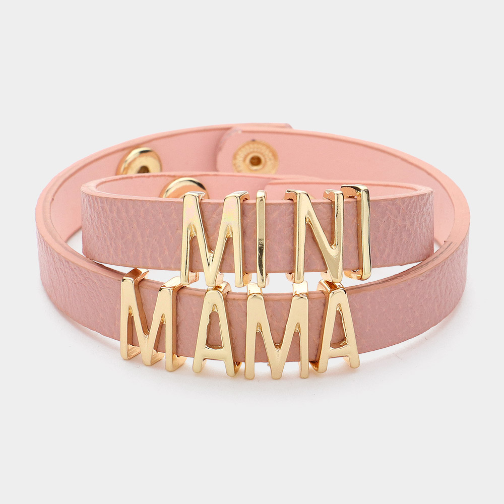 2PCS - MINI MAMA Message Faux Leather Button Snap Bracelets Set