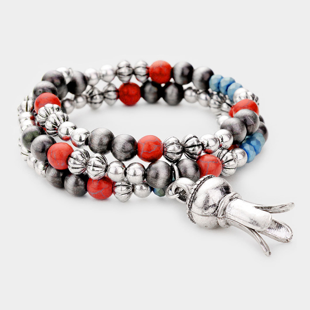 Antique Metal Squash Blossom Charm Adjustable Bracelet