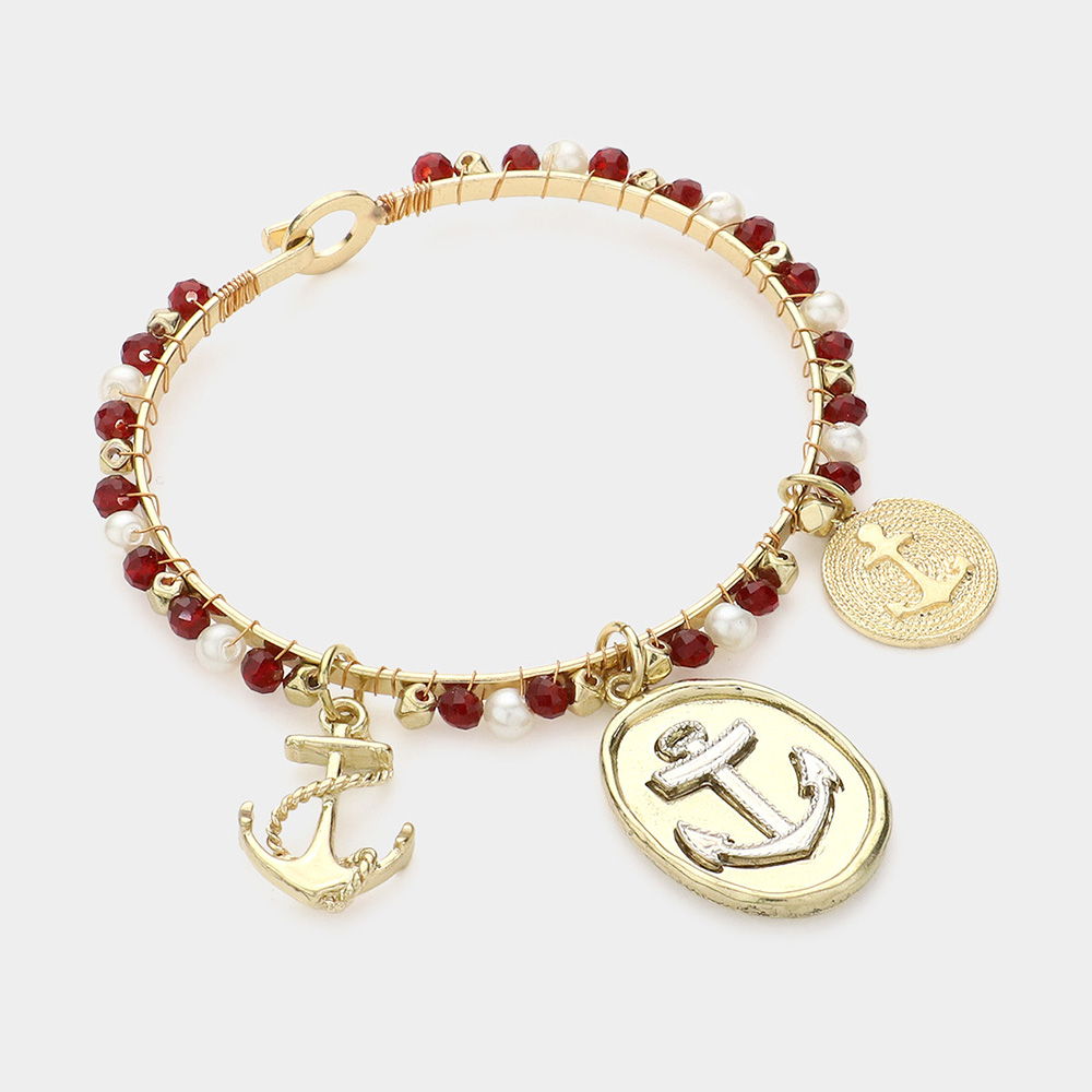 Crystal Anchor Charm Layered Pull Tie Bracelet