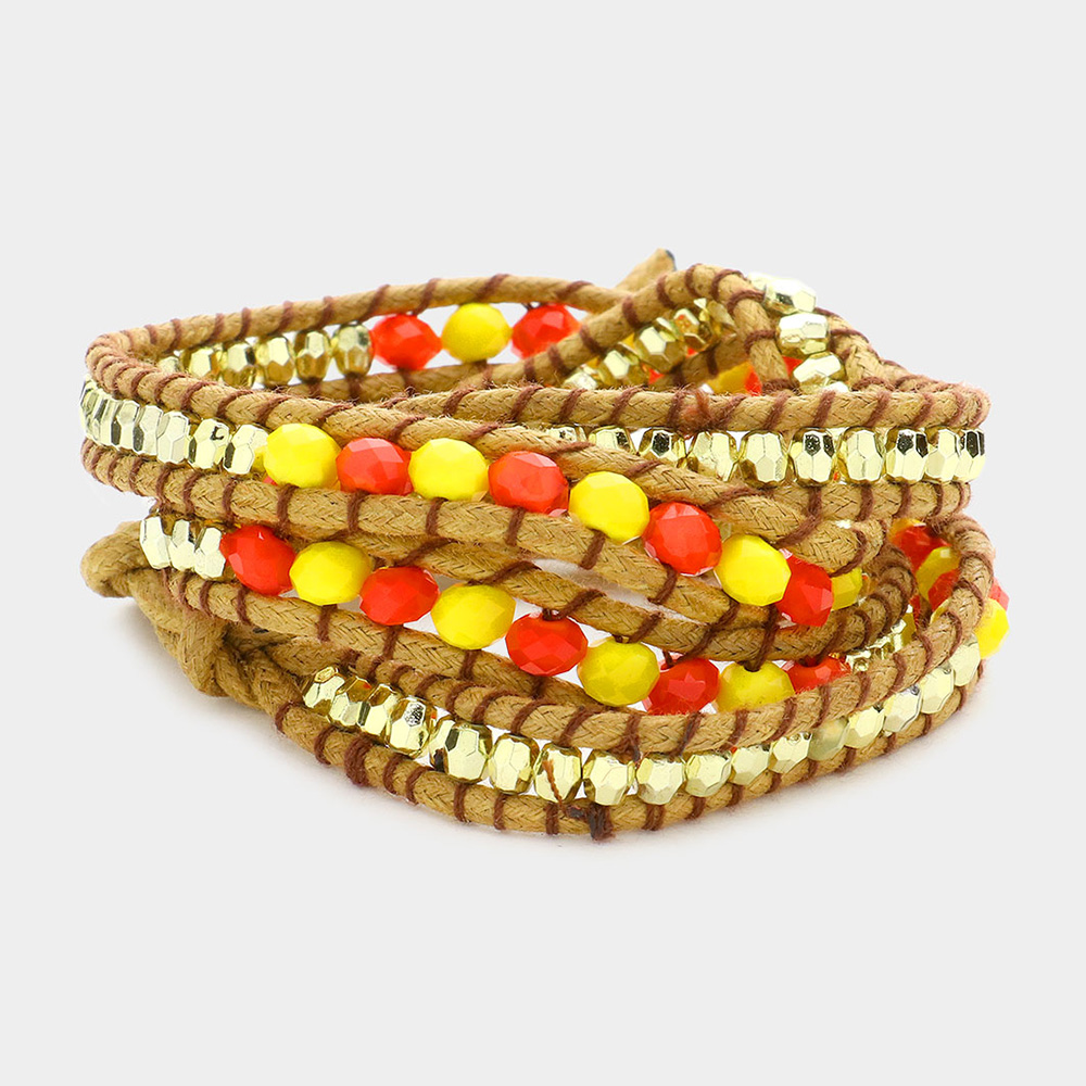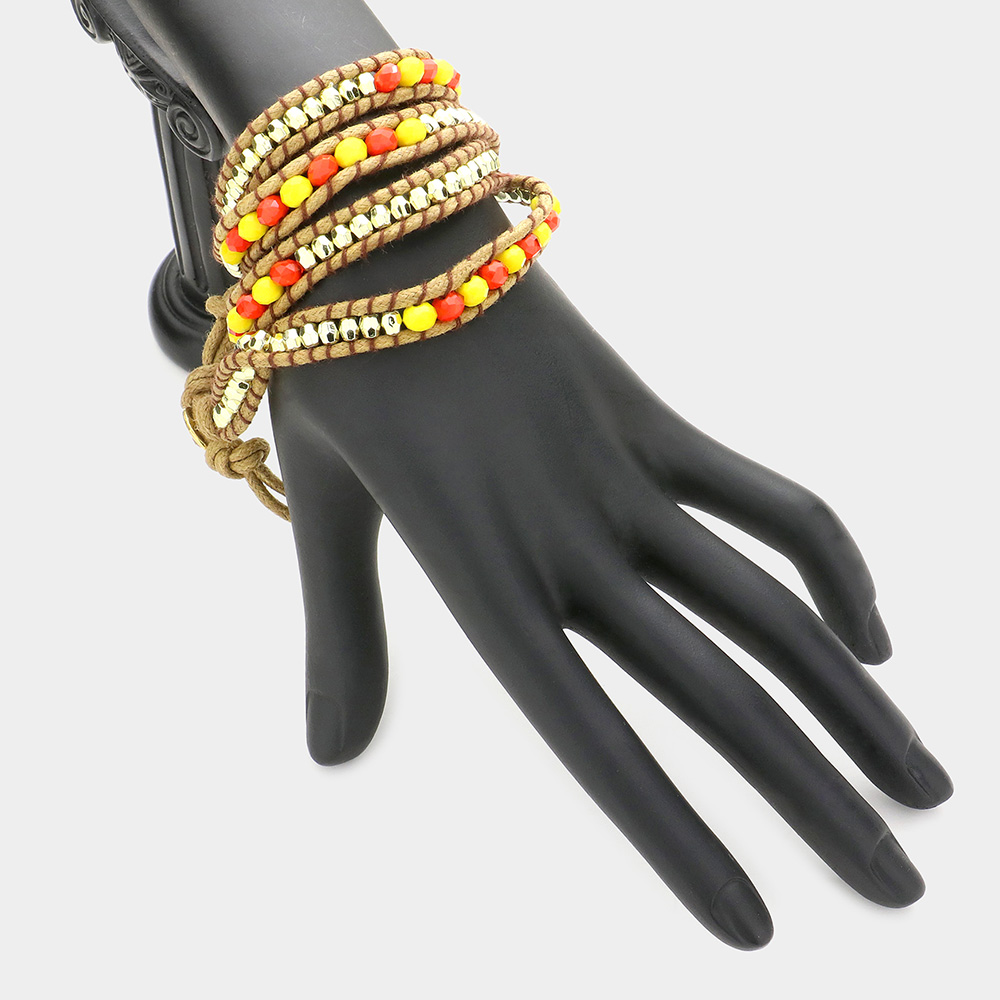 12PCS - Ribbon Colorful Rhinestone Layered Stretch Bracelets