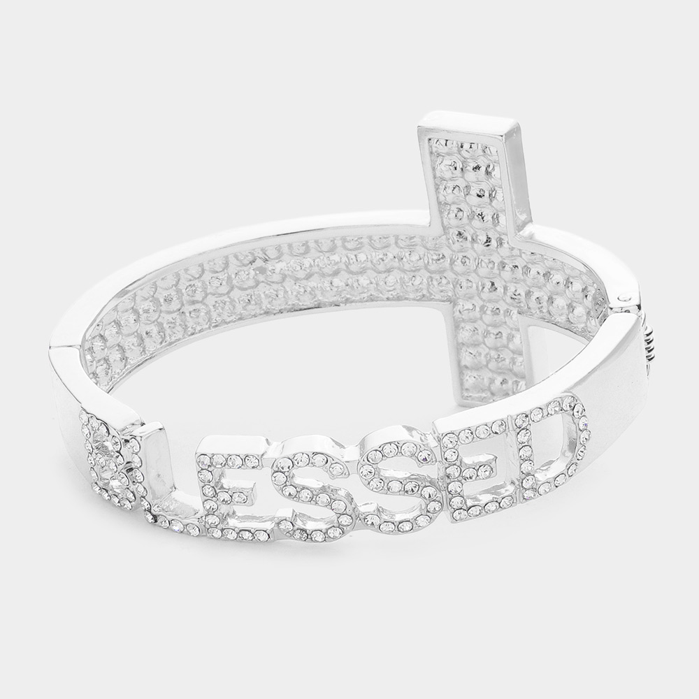 BLESSED Rhinestone Embellished Cross Hinged Bracelet