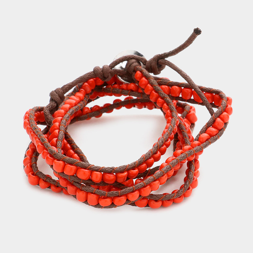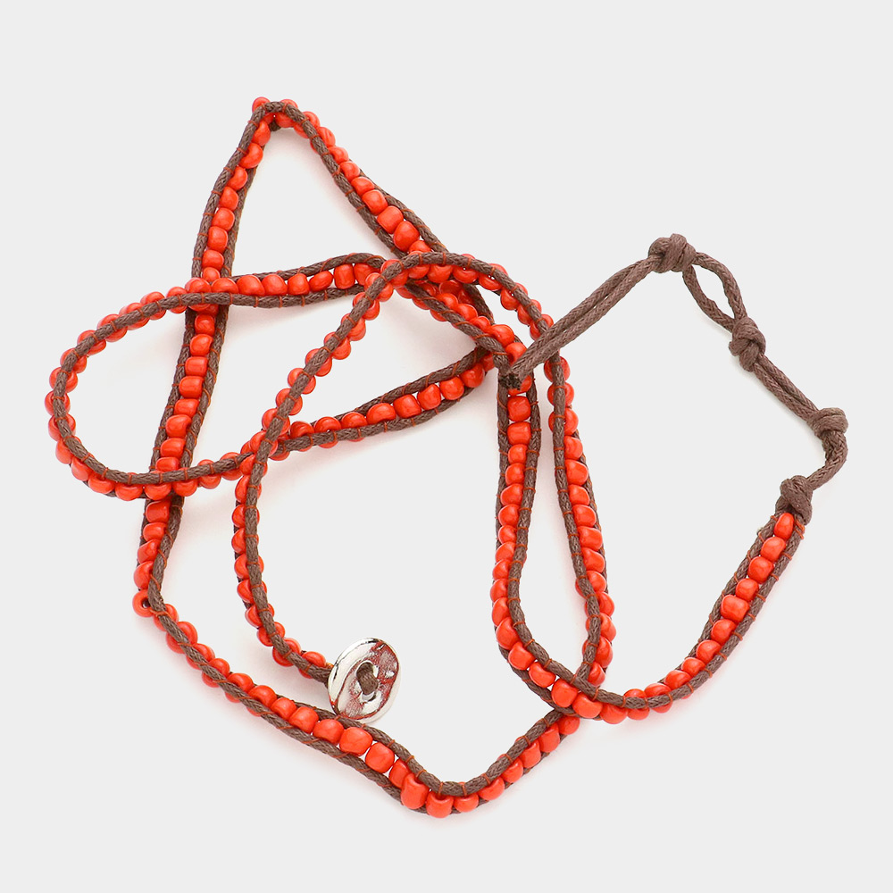 Stone Cluster Beaded Adjustable Cinch Pull Tie Bracelet