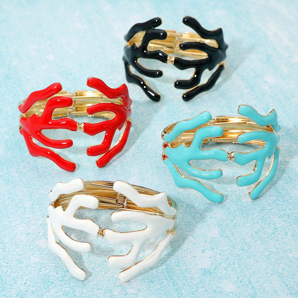 • Bold coral-inspired openwork bracelet featuring fluid branch-like shapes for a modern, sculptural look. Designed with a hinged closure for comfort and style, this statement piece adds a touch of artistic elegance to any outfit, perfect for both casual and evening wear.
