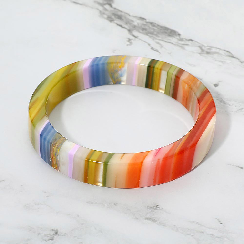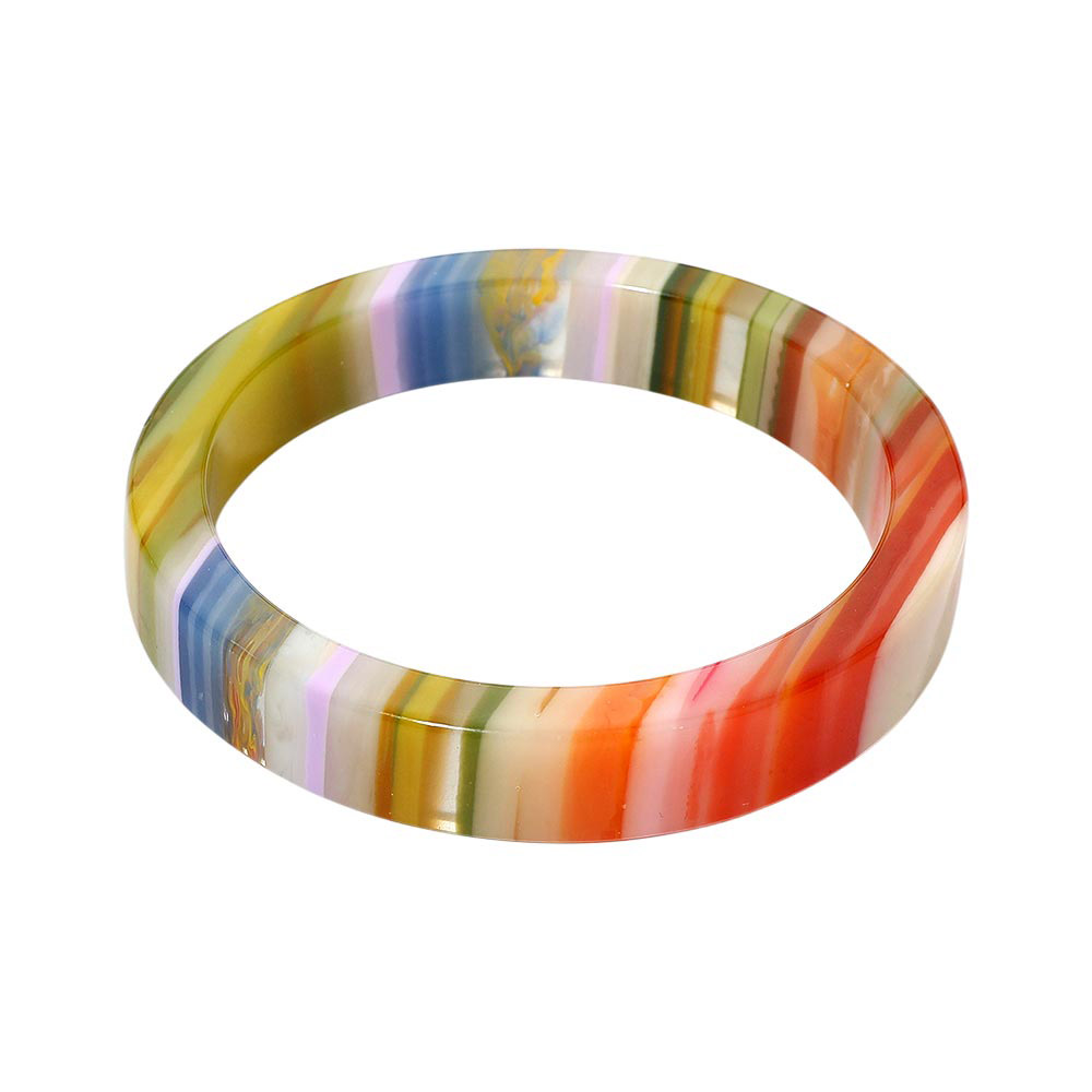 Details • Size : 0.5" H, 2.6" D • Vibrant round bangle bracelet with striped layered design, crafted for a bold and playful style. Lightweight and glossy, it’s a versatile fashion accessory perfect for stacking or wearing solo. Adds a pop of color and artistic flair to casual outfits, parties, or statement looks all year round.