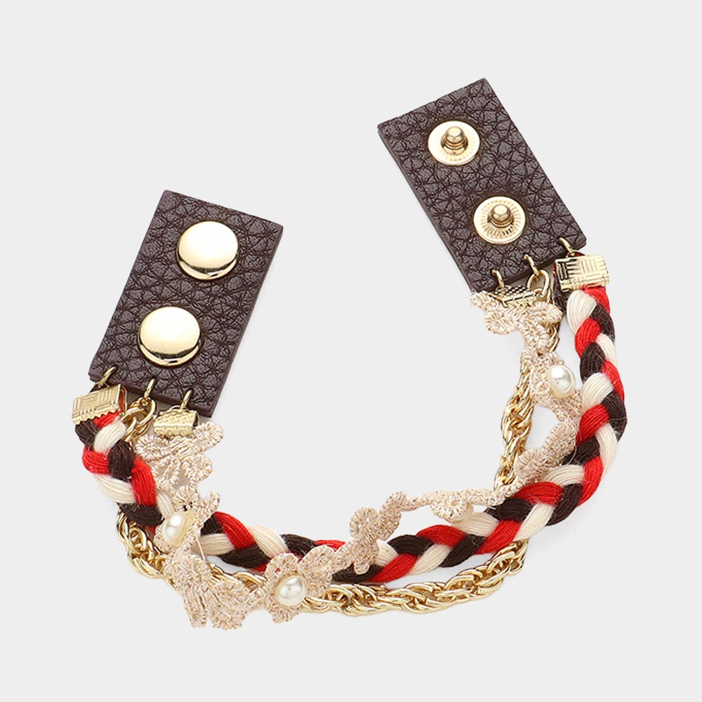 Braided Thread & Metal Chain Bracelet