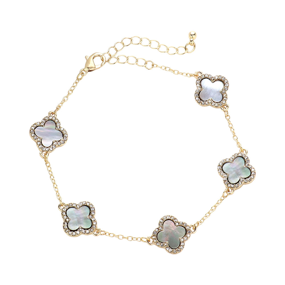 Brass Metal Mother Of Pearl Quatrefoil Station Bracelet