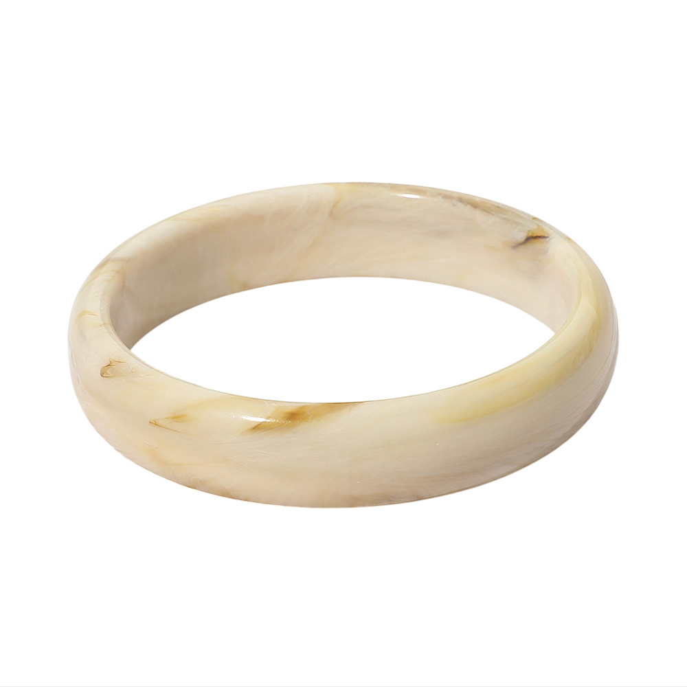 • Sleek round bangle designed with a polished marble-like effect, offering timeless elegance and versatility. A perfect accessory to complement casual looks or add a subtle touch of sophistication to evening wear.