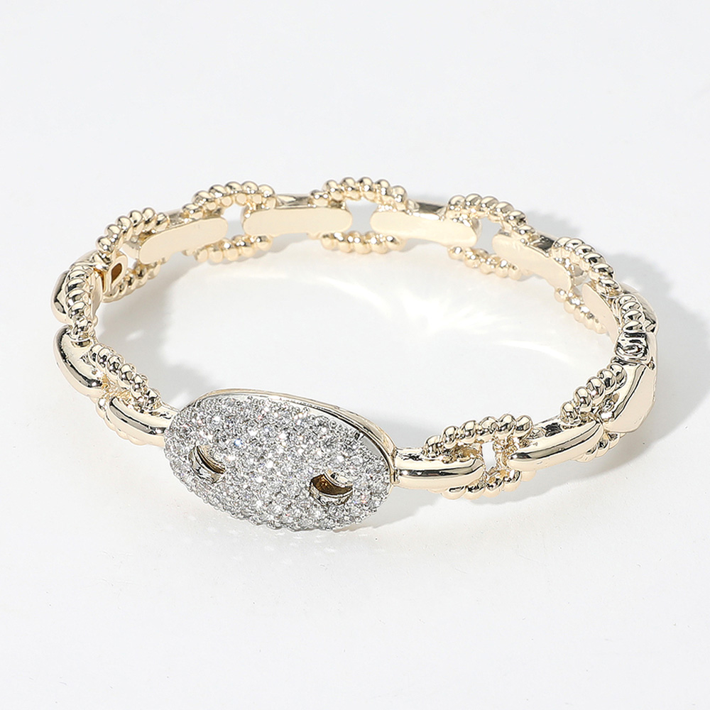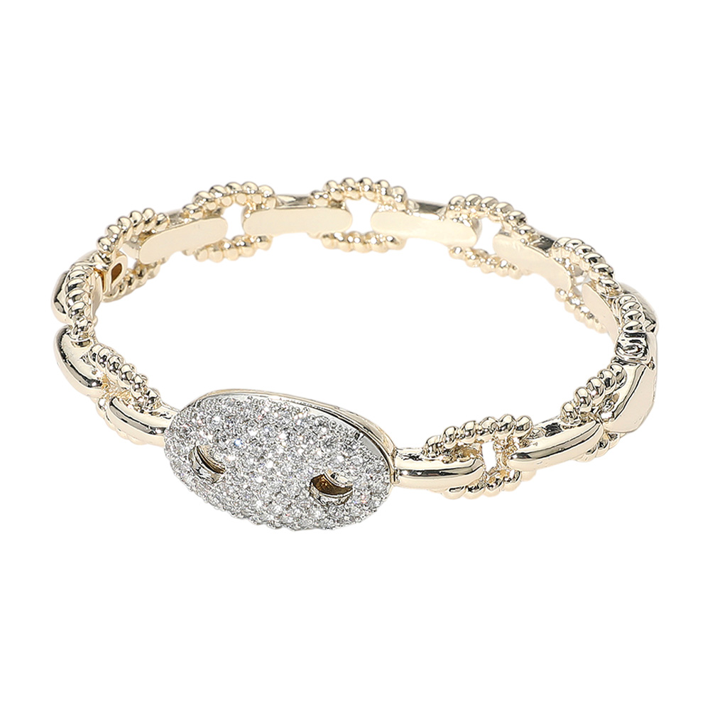 CZ Stone Paved Mariner Link Pointed Hinged Bangle Bracelet