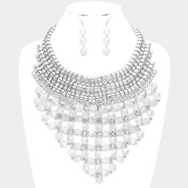 Chunky Acrylic Beaded Multi Layered Faux Leather Necklace