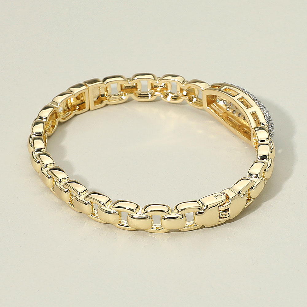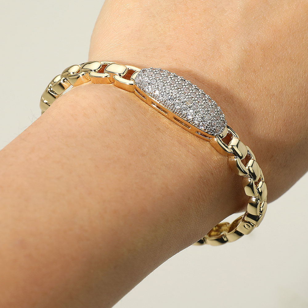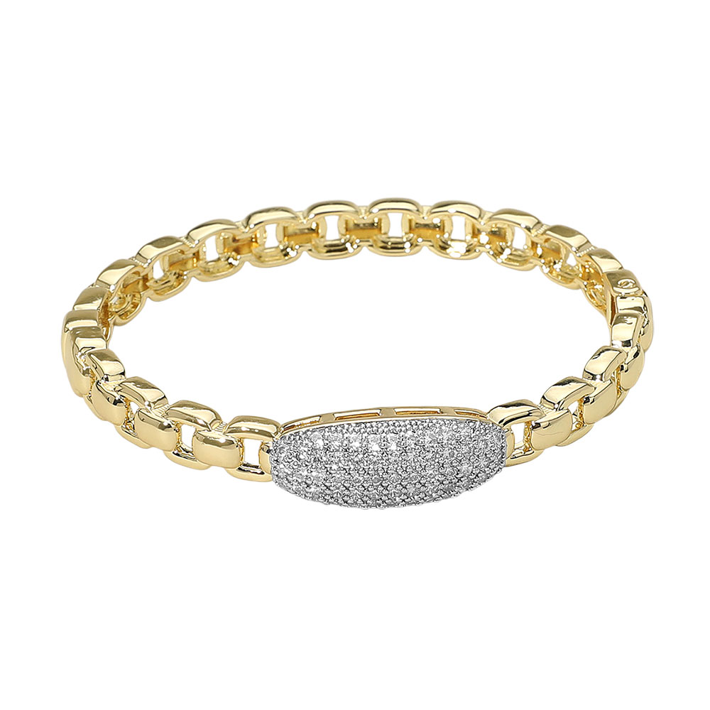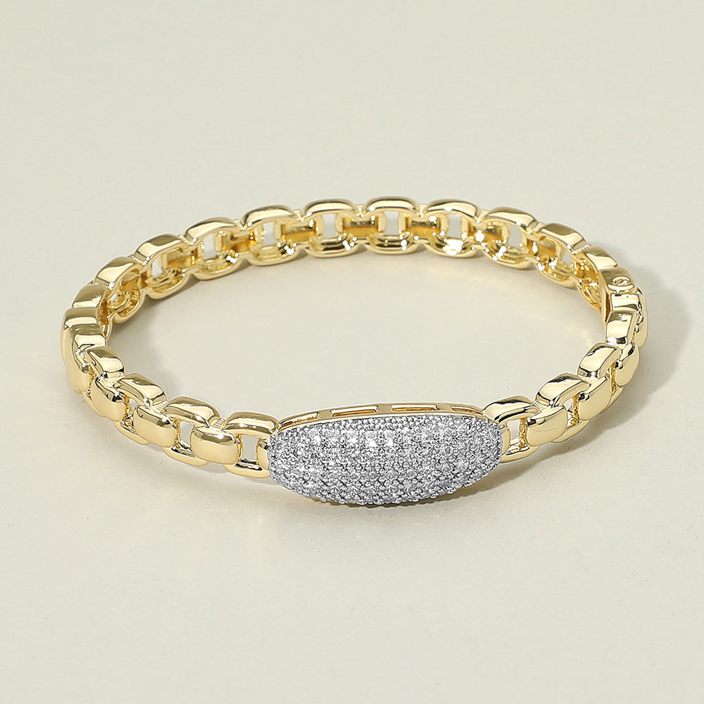 Details • Size : 0.4" H, 2.5" D • Hinged Closure • Stylish chain link bracelet featuring a shimmering pave oval centerpiece. A bold yet elegant accessory designed to elevate both casual and formal looks with timeless sophistication and modern charm. • CZ Cubic Zirconia