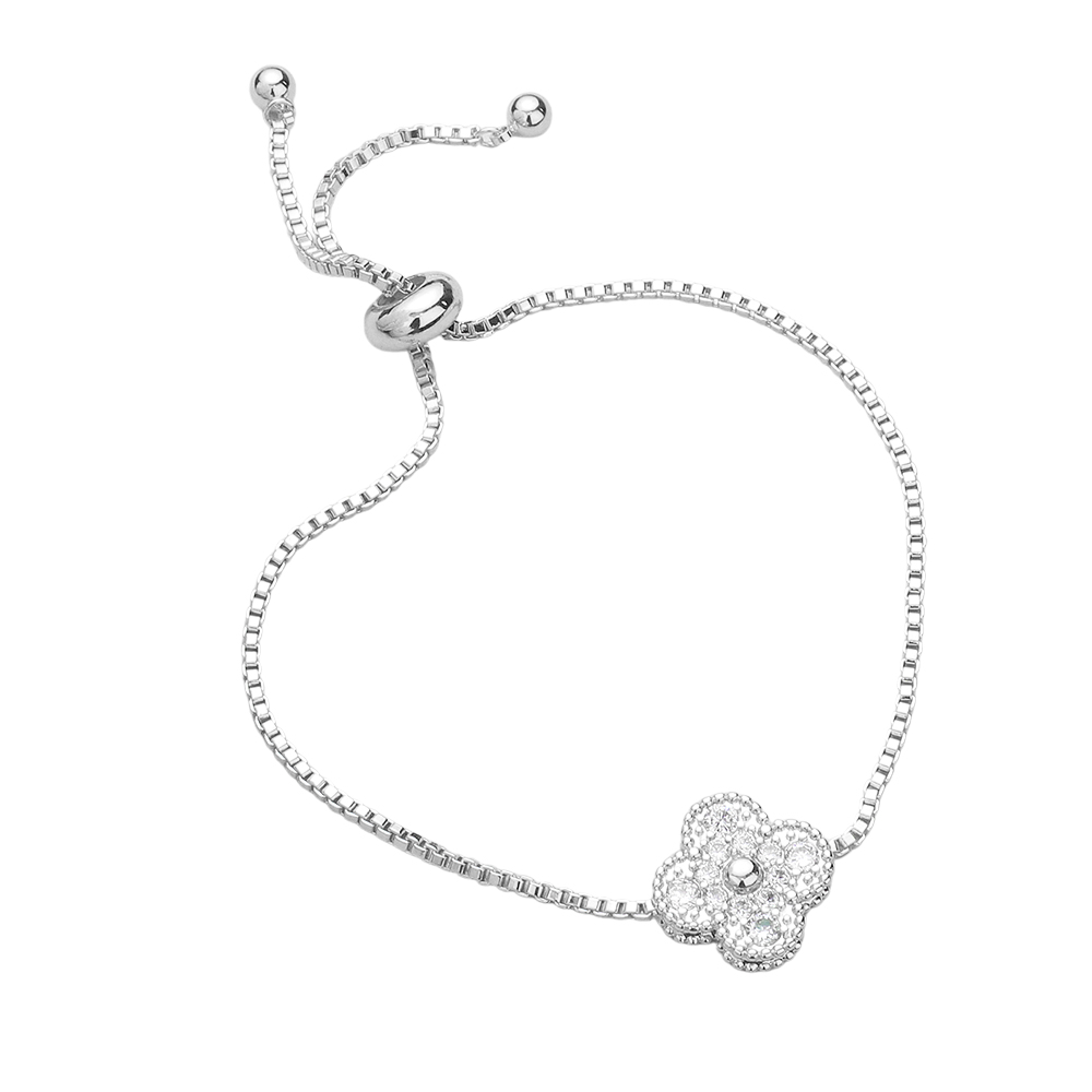 CZ Stone Paved Quatrefoil Pointed Adjustable Cinch Pull Tie Bracelet