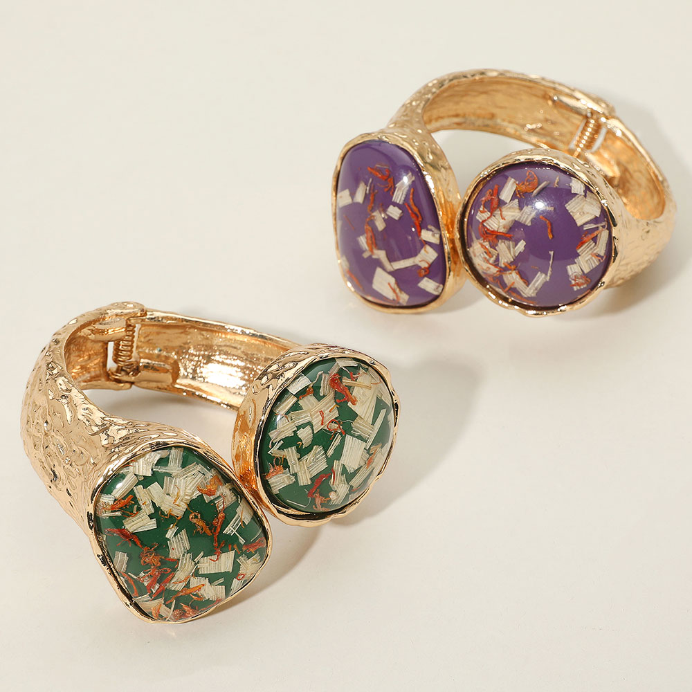 • Bold cuff bracelet with dual round resin inlays and textured finish, offering a unique and modern look for standout accessorizing.