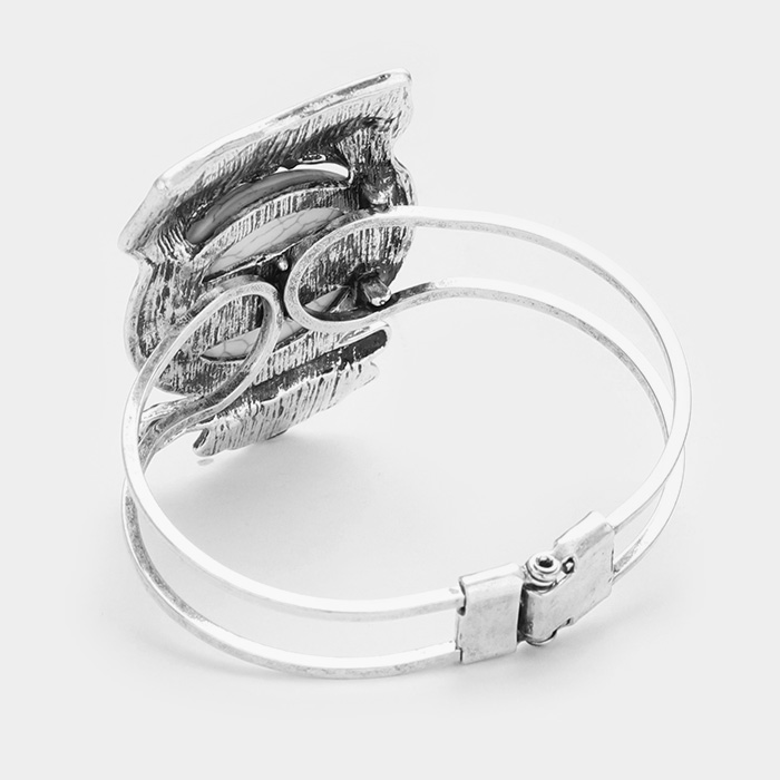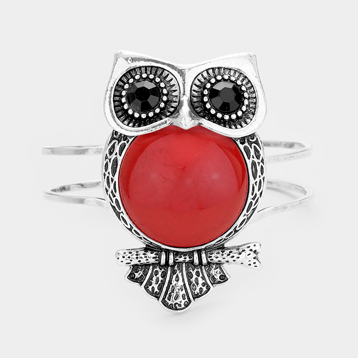 Embossed Metal Owl Red Coral Wire Hinged Bracelet