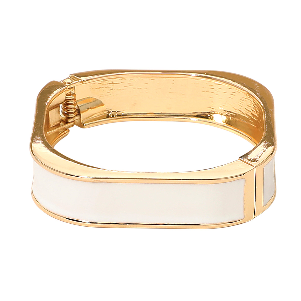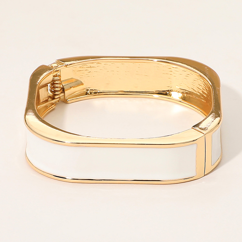 • Modern rectangular hinged bangle bracelet featuring a sleek enamel surface and polished finish. Its clean geometric shape adds a minimalist yet chic touch to any outfit. Perfect for elevating both casual and formal styles with refined sophistication and timeless appeal.