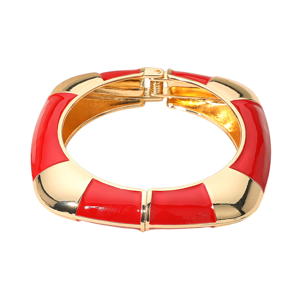 Details • Size : 0.6" H, 2.3" D • Hinged Closure • Modern striped hinged bangle bracelet designed to elevate your everyday or evening outfits. With its sleek geometric accents and secure fit, this versatile accessory adds a statement touch to any wardrobe, perfect for stacking or wearing solo.