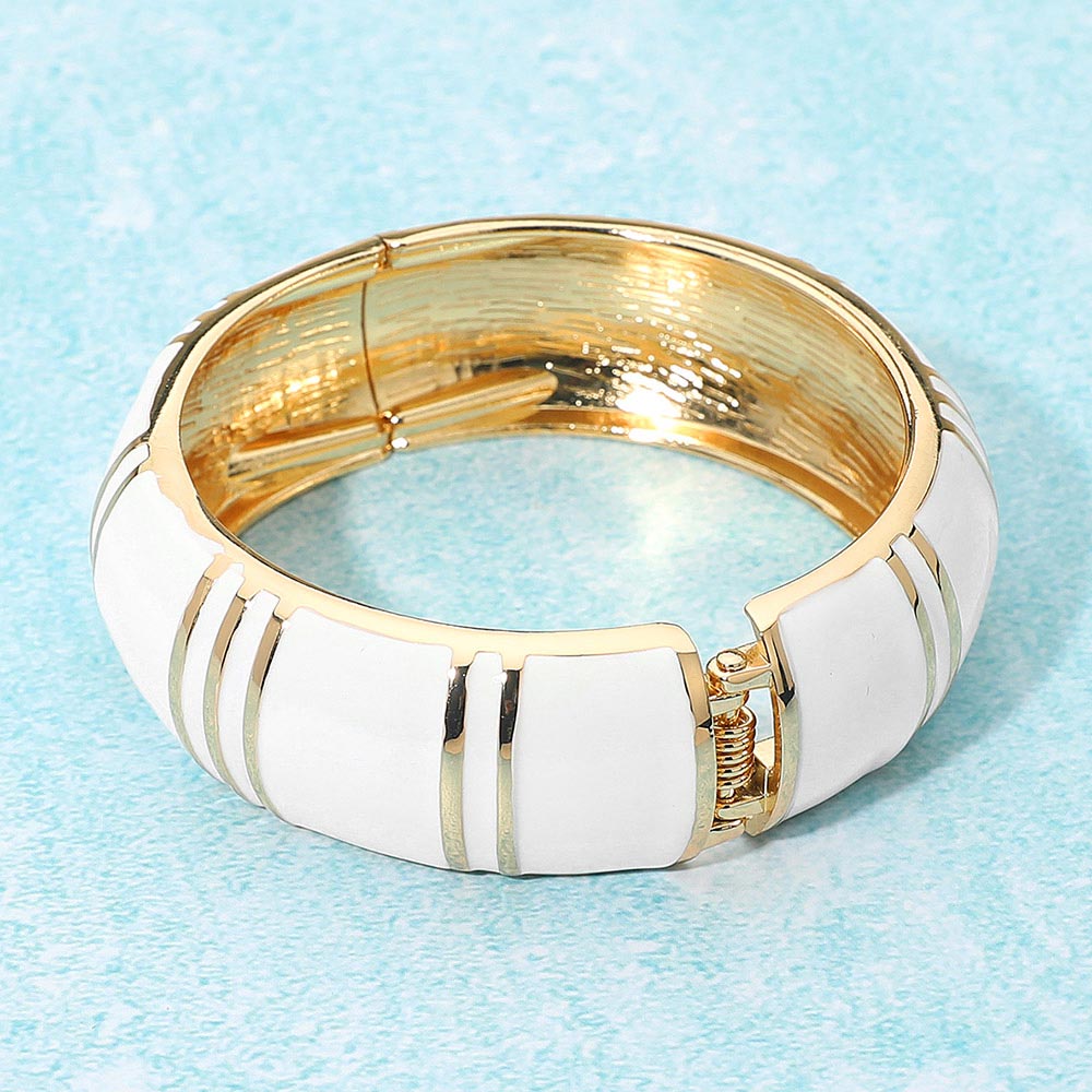 Enamel Striped Dome Hinged Bangle Bracelet