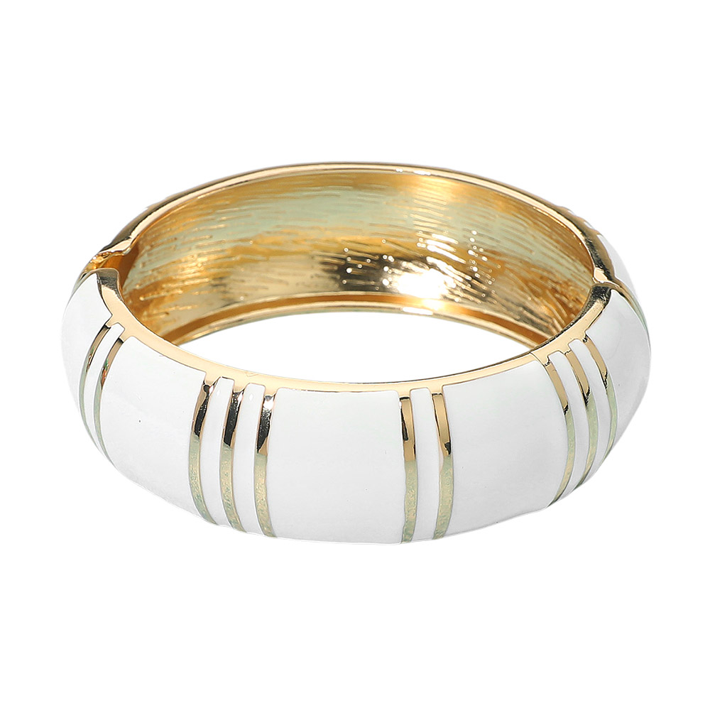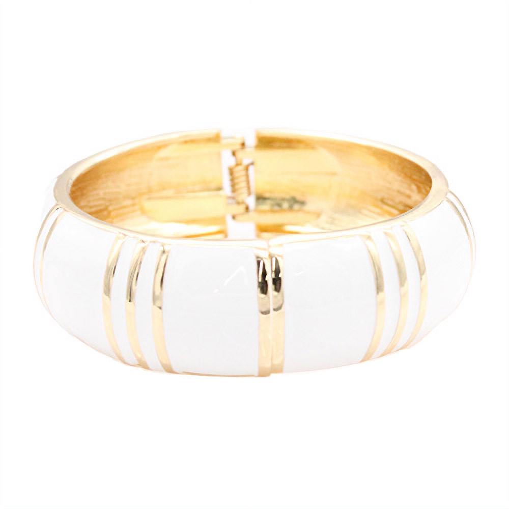 Details • Size : 0.9" H, 2.5" D • Hinged Closure • Chic dome-shaped bracelet featuring sleek striped accents and a smooth polished finish. Designed with a secure hinged closure for comfort and ease, this bold fashion accessory adds modern sophistication and a refined touch to any outfit or occasion. • Lead and Nickel Compliant